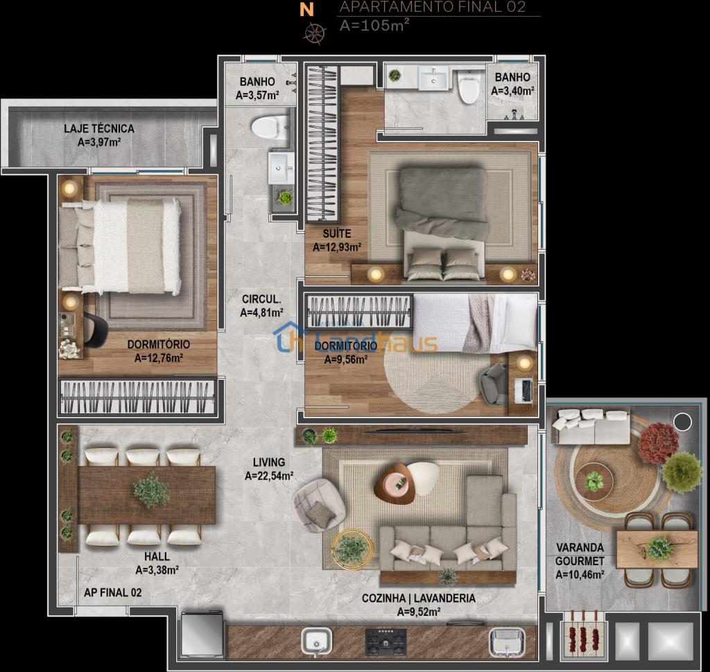 - Piso em porcelanato ou laminado