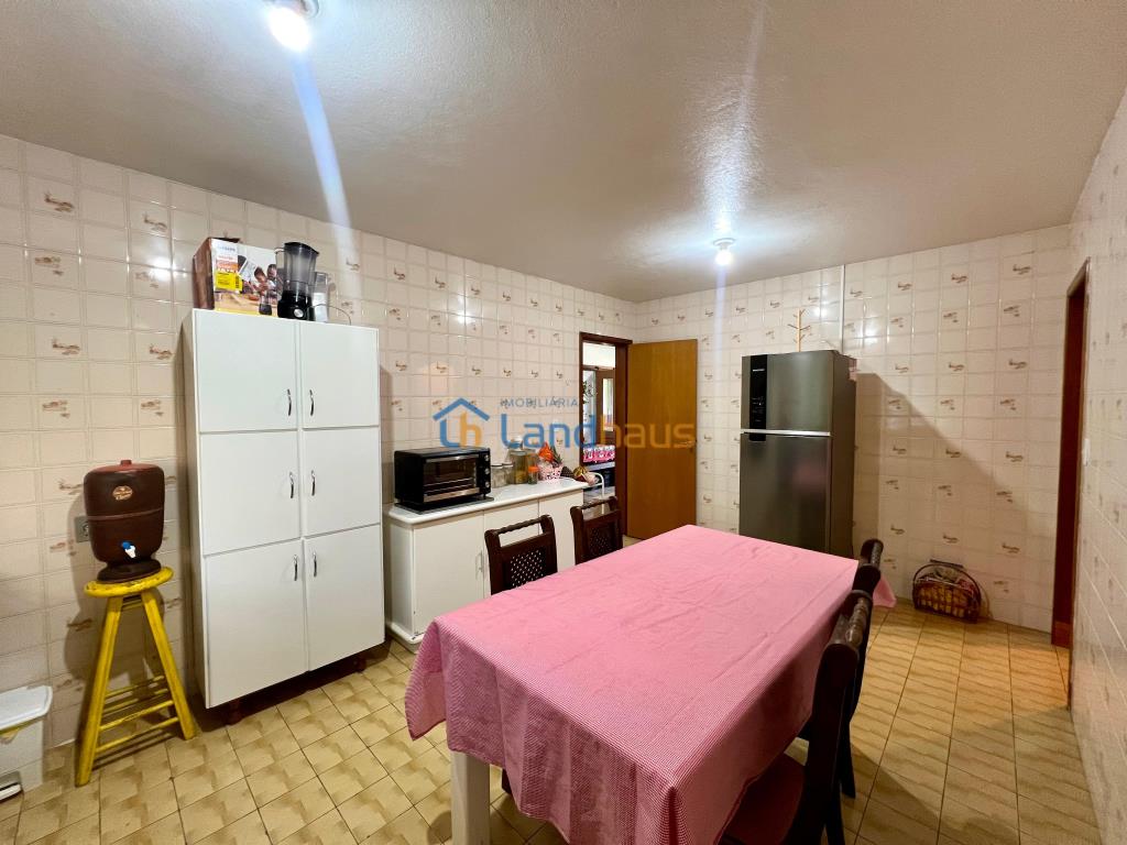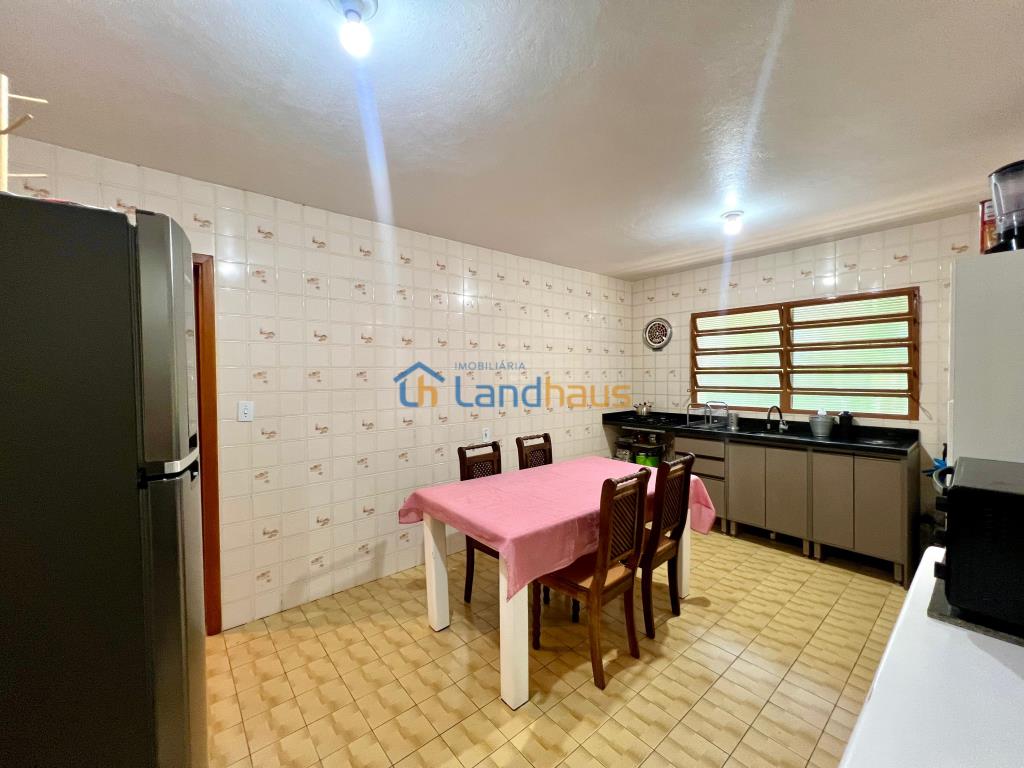 Uma casa de alvenaria com 123,93 metros de área construída, possui 3 dormitórios, sala de estar, cozinha ampla, 2 banheiros, despensa, laje...Cozinha com móveis e um fogão a lenha maravilhoso....