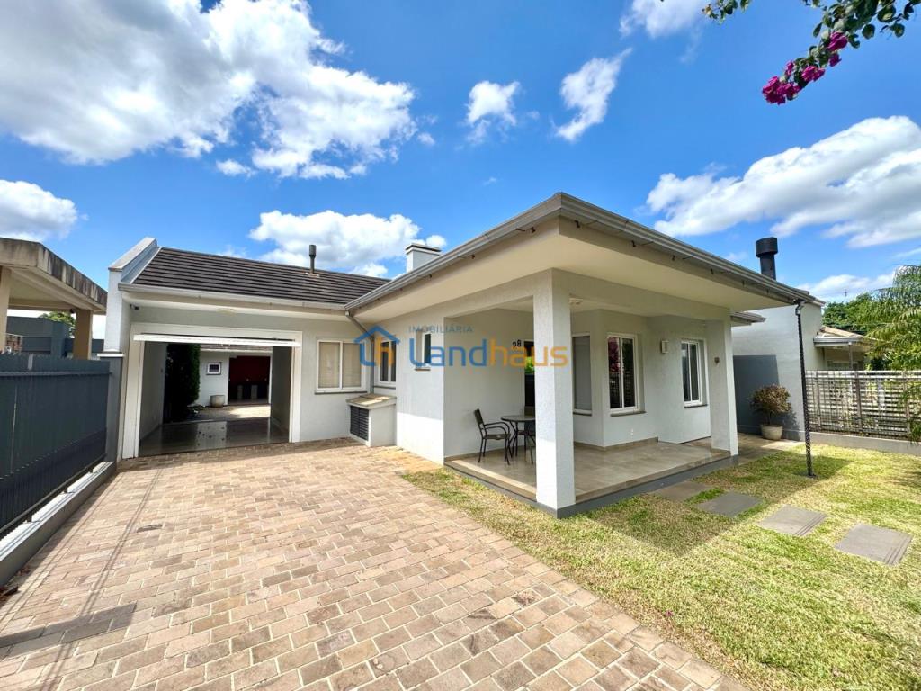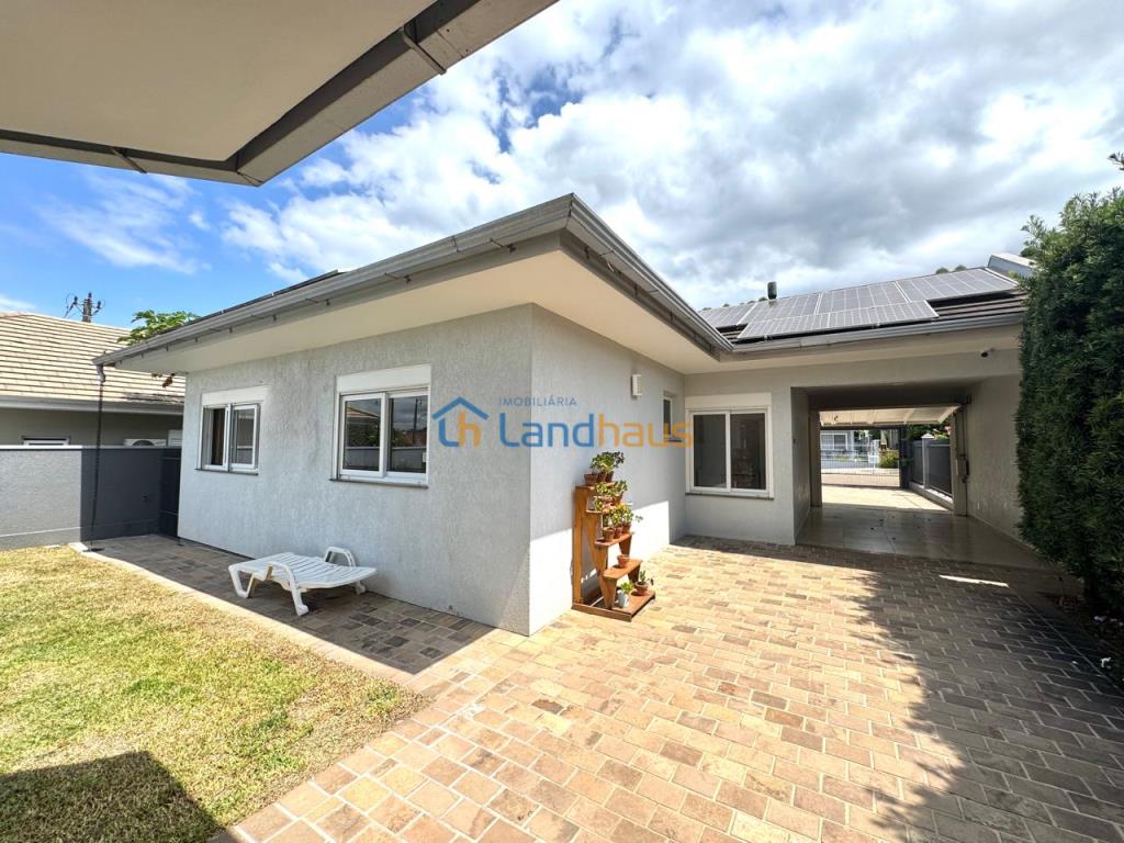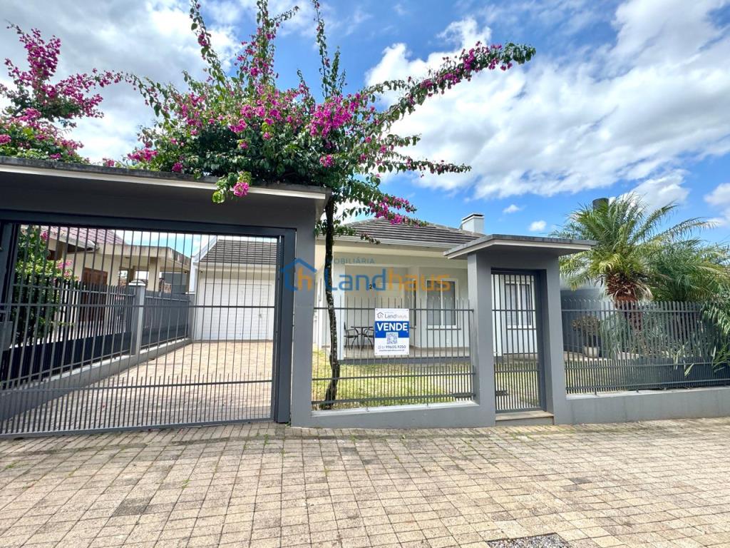 Excelente casa de alvenaria, totalmente plana, conta com 03 dormitórios sendo 01 suíte, lavabo, sala de estar com lareira e jantar integrados, cozinha completa com churrasqueira, lavanderia, garagem fechada para 02 carros, área aberta na frente...nos fundos um quiosque com churrasqueira, fogão e pia, banheiro, 01 dormitório que também pode ser utilizado como escritório...01 depósito...Piso em porcelanato, aberturas em PVC, energia fotovoltáica, água quente, alarme, excelente iluminação e ventilação...
